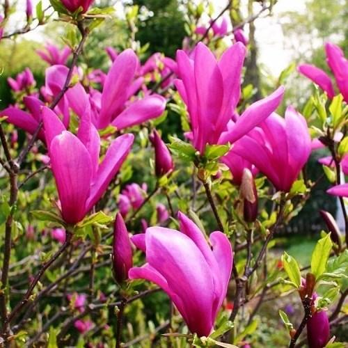 Магнолія гібридна фраза - рослини-початківська, цвітуть навіть маленькі кущики. Цей сорт магнолій навряд чи найпопулярніший в Україні вигляд.Кустарник росте щільно, у ранньому віці у формі конуса, пізніше набуває округлої форми. У дорослому віці досягає висоти від 2 до 3,5 метра. Має темно-зелене овальне листя, довжина якого 6-10 см. Річний приріст до 20 сантиметрів.Квіти вузько чашкові, дзвіночки, їх діаметр — до 15 см, пурпурового кольору, а на кінцях вони трохи світліші. Рослина зацвітає у квітні — червні, одночасно з розпуском листя, а іноді й раніше цього.Магноліяmin воліє рости на теплих, захищених від вітрів місцях. Ідеально для неї — біля південної стіни будинку. Рослина має високу декоративність не тільки під час цвітіння, упродовж усього сезону — це чудовий казковий чагарник, який тільки своєю наявністю на ділянці здатний повністю його перетворити на радість.